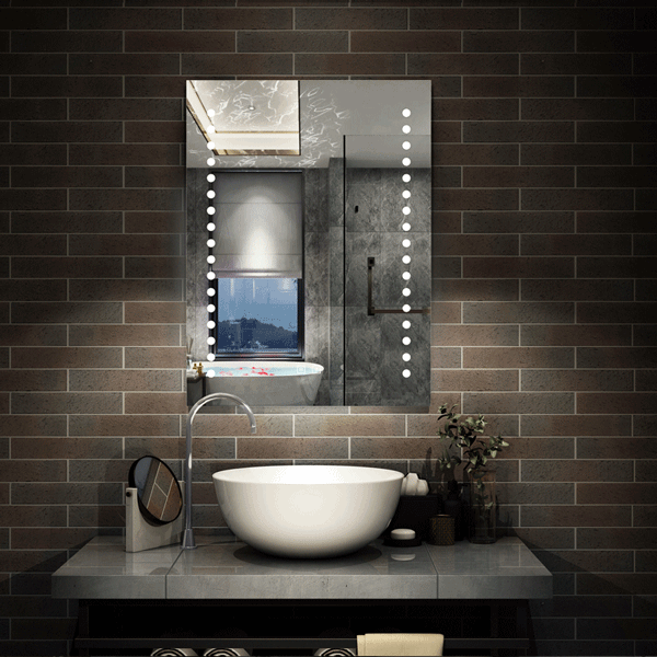 - ENERGIESPAREND ?Zwei Touchschalter, einen für Kaltweiß LED Beleuchtung und ein weiterer für die Anti-Beschlag Funktion.
