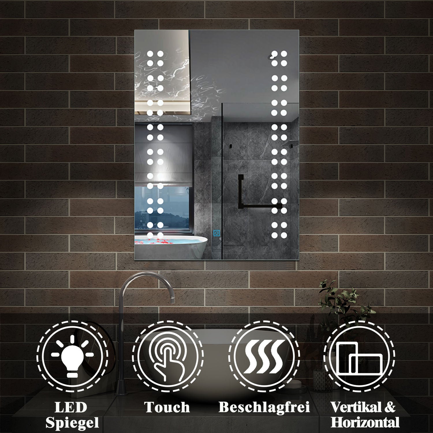 45×60 50×70 cm LED Badspiegel Wandspiegel mit Beleuchtung Touch Beschlagfrei Kaltweiß