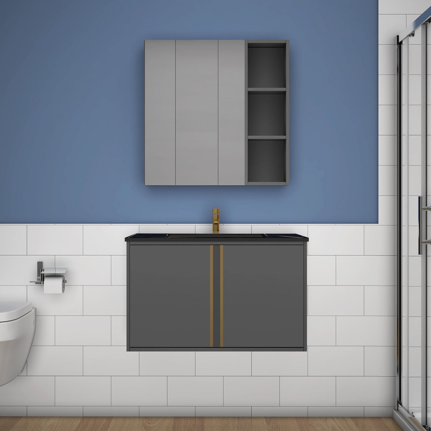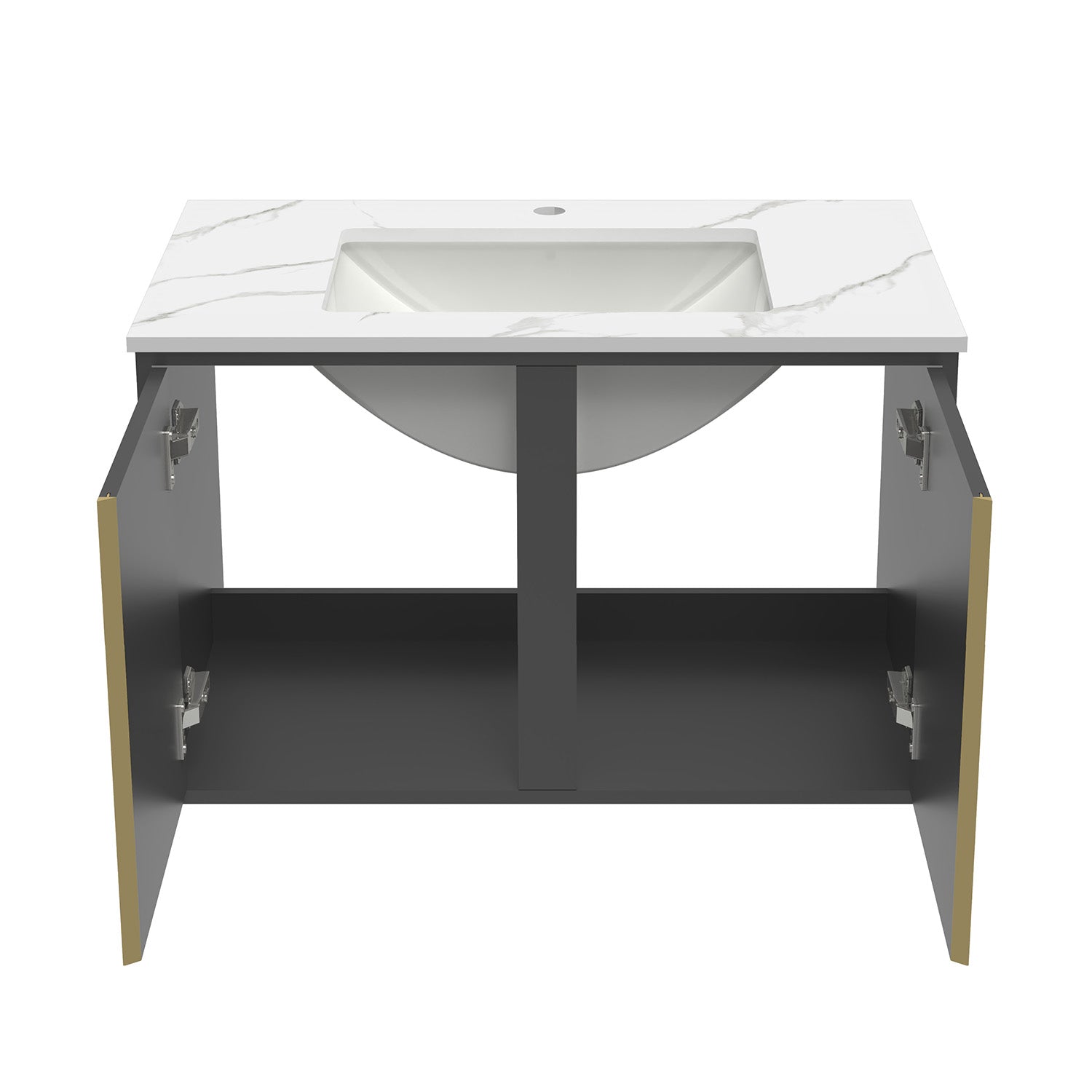 60/80/100 cm Badmöbel Set Felsplatte Waschtisch mit Unterschrank Dunkelgrau
