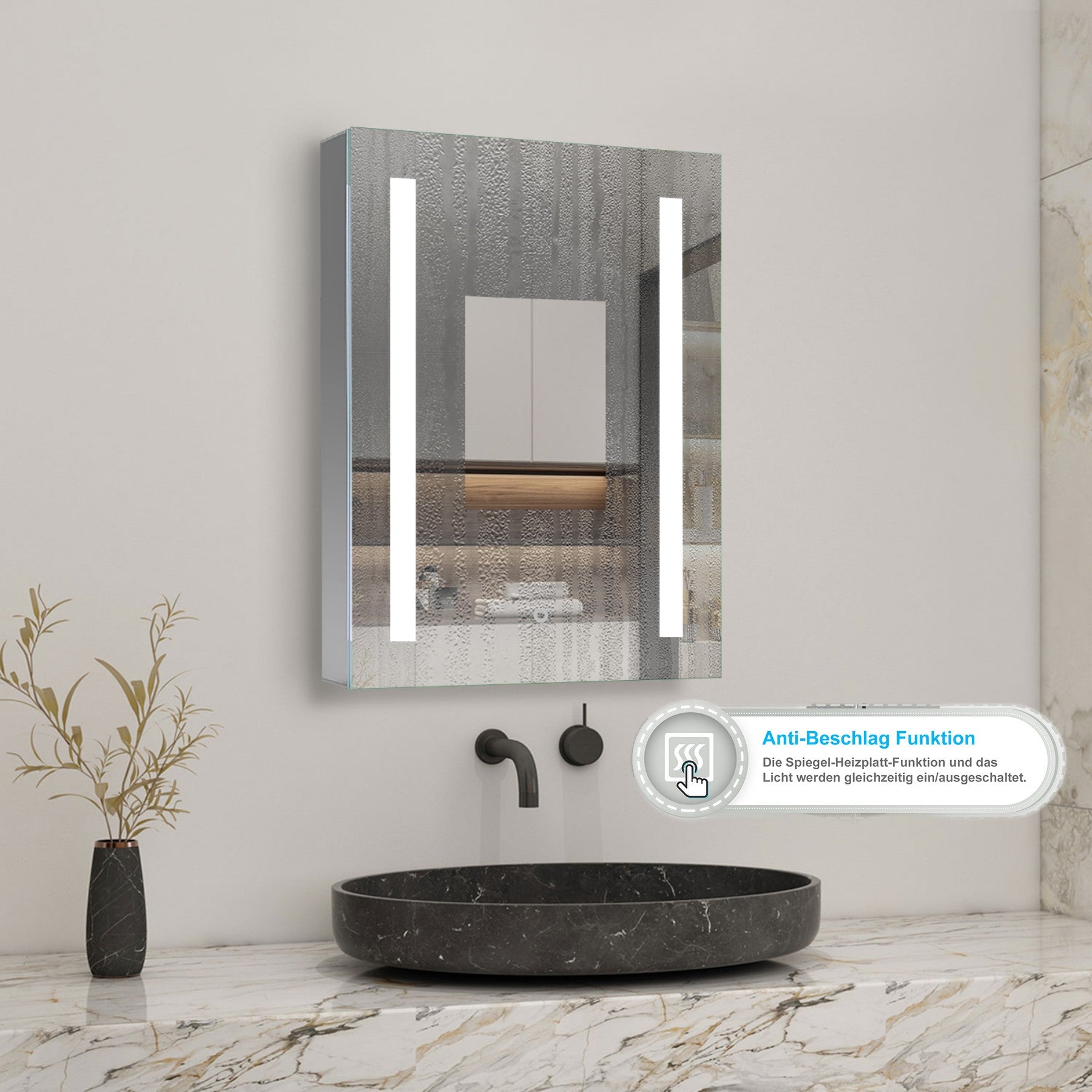 LED Spiegelschrank 60x80cm mit Wand/Touchschalter,Beschlagfrei,3 Lichtfarbe 2700-6500K Dimmbar und Rasier steckdose,Aluminium, Softclose
