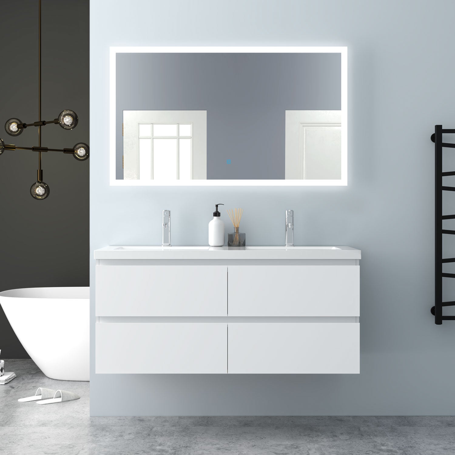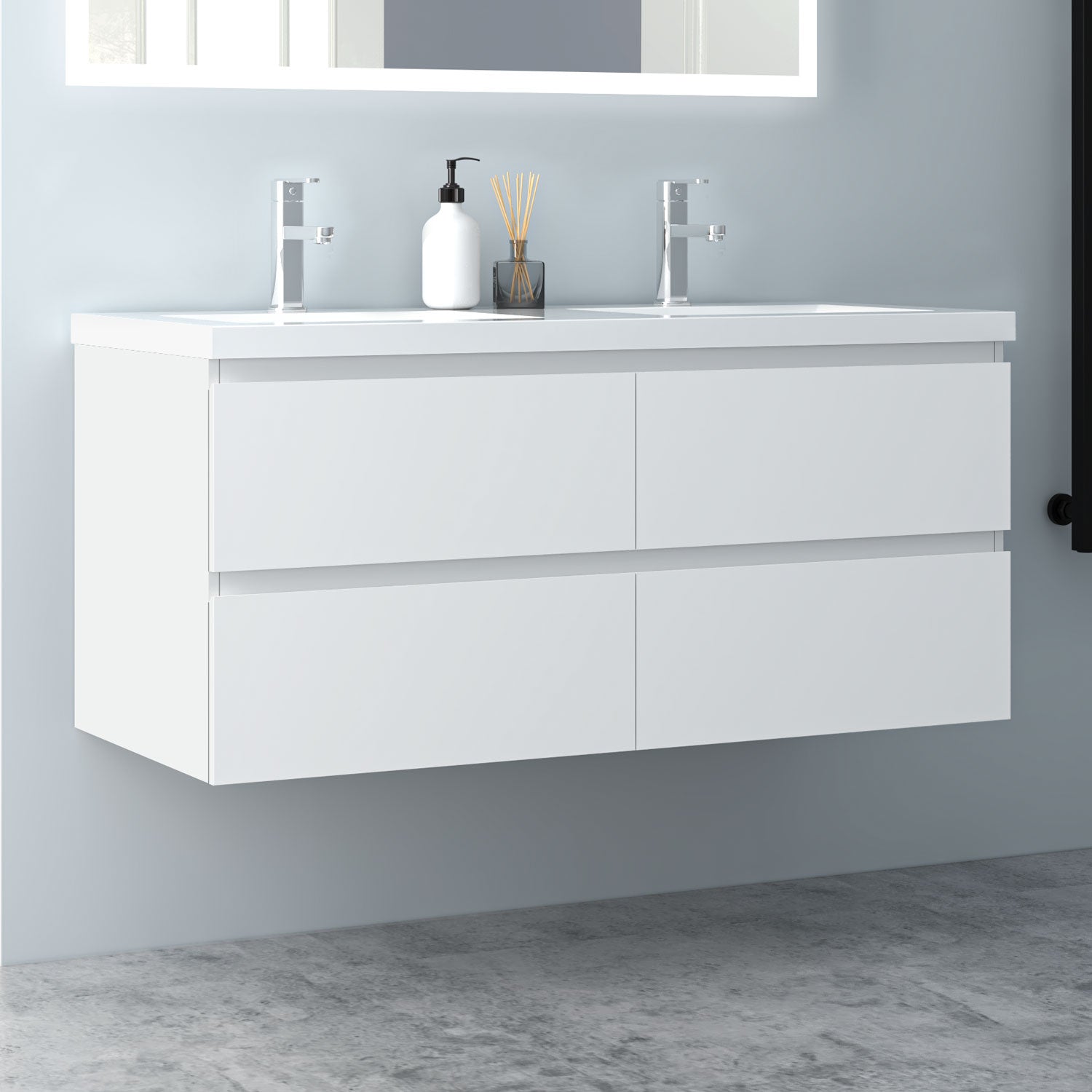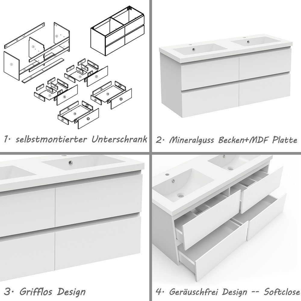 Aica Sanitär Badezimmermöbel 120cm Mineralguss Waschtisch mit Unterschrank Badmöbel set Badezimmerschränke mit 4 Soft-Close Schubladen Weiß Matt