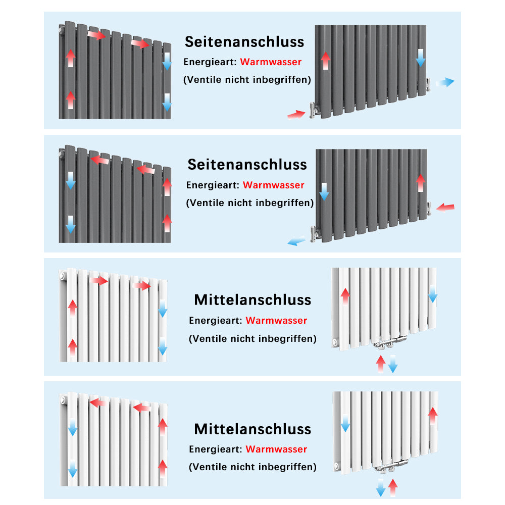 Aica Sanitär Design Heizkörper Oval Röhrenheizkörper 1800×590mm Doppellagig Weiß Großwahl