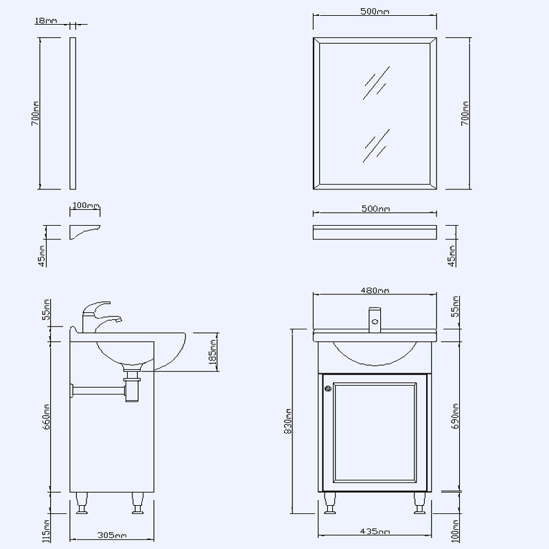 - Die absoluten Außenmaße inkl. aller Montageteile des Schranks und des Beckens betragen:480mm × 305mm ×720mm (Breite × Tiefe × Höhe); Gewicht: 21.4KG