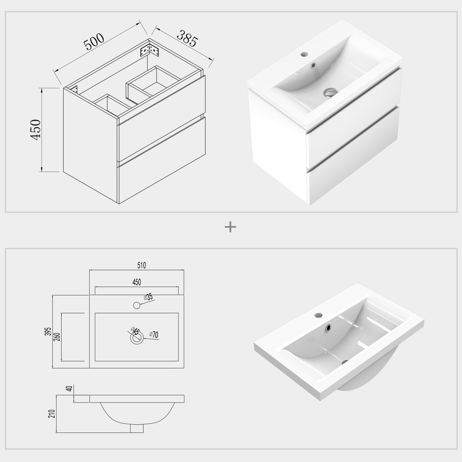 Das Waschbecken kann c.a. 1 cm breiter sein als der Schrank, um Feuchtigkeitsschäden am Schrank zu vermeiden.