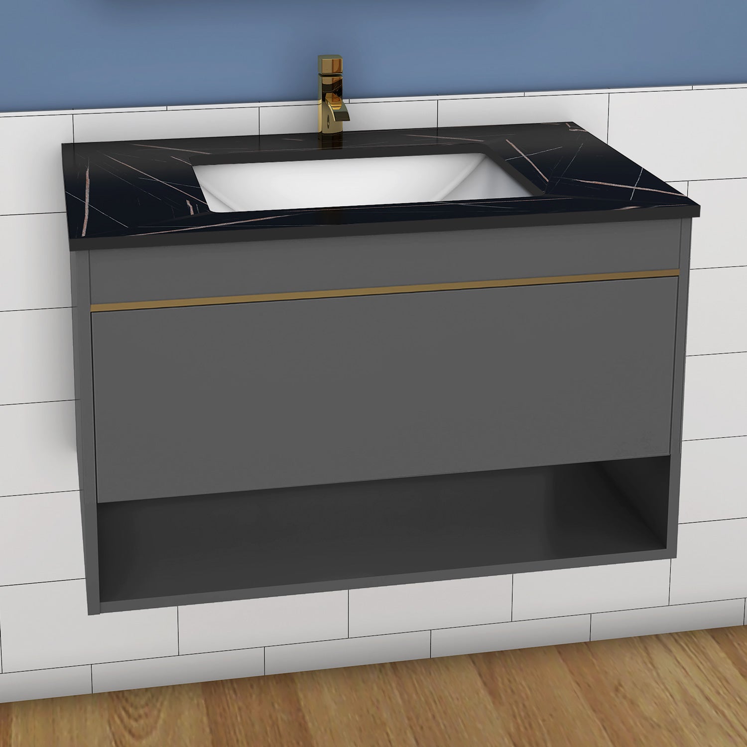 Badmöbel Set 60/80/100 cm Felsplatte Waschtisch mit Unterschrank Dunkelgrau