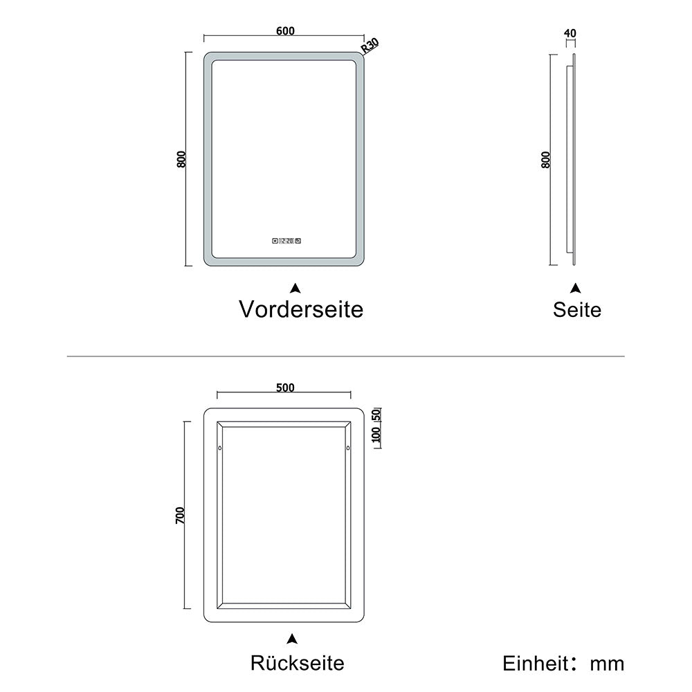 LED Badspiegel mit Uhr, Touch, Beschlagfrei Badezimmerspiegel mit Beleuchtung Lichtspiegel IP44 Kaltweiß energiesparend