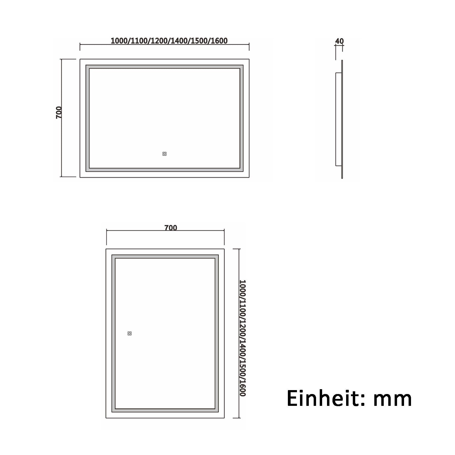 Badspiegel mit Beleuchtung,140x70cm LED Wandspiegel mit Touch-Schalter,Beschlagfrei,Badezimmerspiegel mit Kaltweiß,IP44