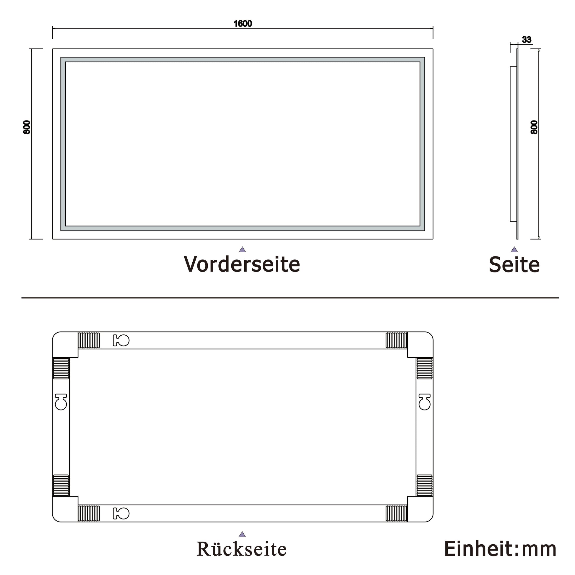 Badspiegel mit Beleuchtung 160x80cm LED Wandspiegel mit Wand-Schalter Beschlagfrei Lichtspiegel Badezimmerspiegel Kaltweiß IP44