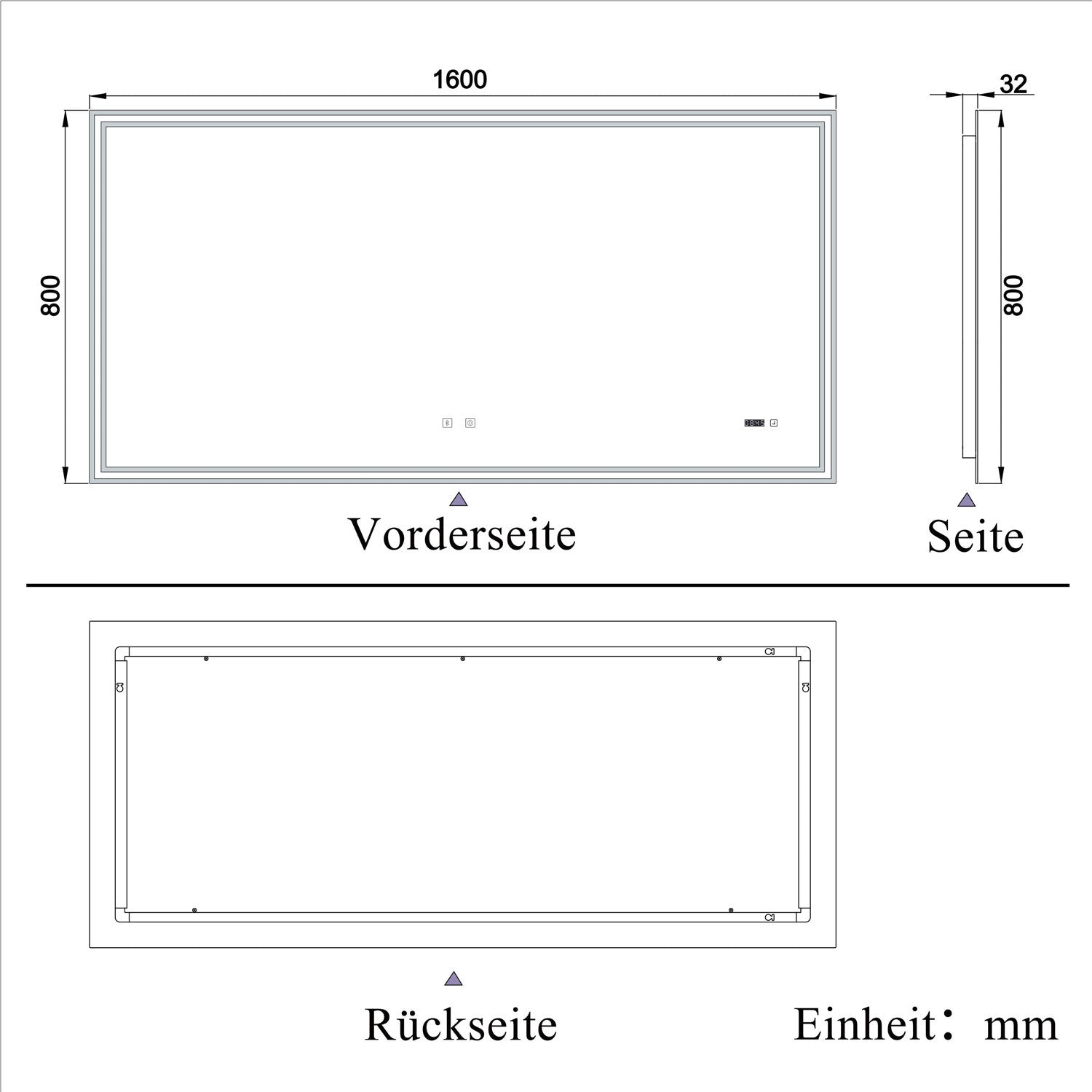 Aica Sanitär Badspiegel mit Beleuchtung 160x80cm LED Wandspiegel mit Touch,Bluetooth und Uhr,Badezimmerspiegel Beschlagfrei 3 Lichtfarbe 2700-6500K Dimmbar,IP44