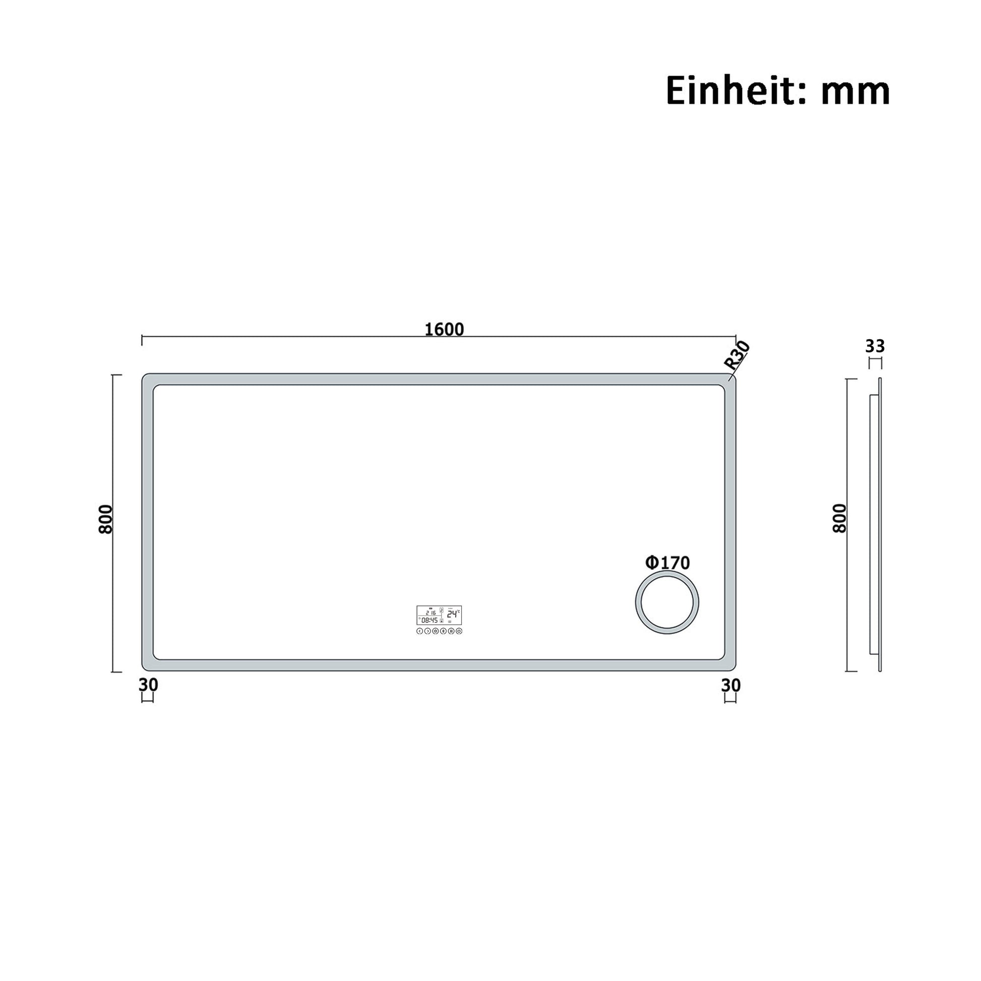 160x80cm LED Badspiegel mit Bluetooth,Touch und 3x Vergrößernder Kosmetikspiegel,Badspiegel mit Beleuchtung,Beschlagfrei,Badezimmerspiegel mit 3 Lichtfarbe 2700-6500K Dimmbar,IP44