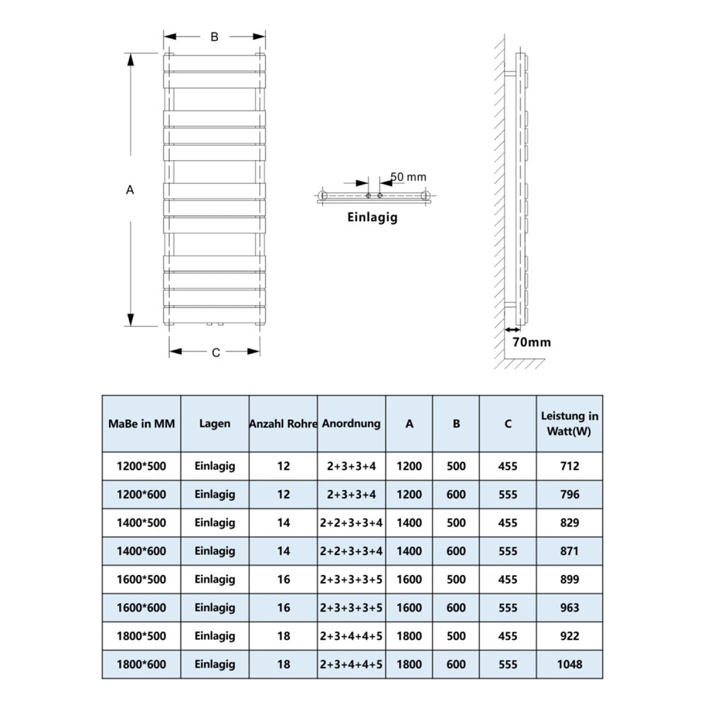 Aica Sanitär Paneelheizkörper Badheizkörper Handtuchtrockner Mittelanschluss Weiß/Anthrazit
