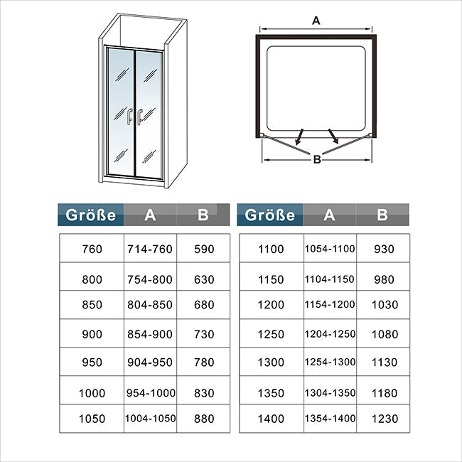 Achtung: Bei den Abmessungen handelt es sich immer um Außenmaße (inkl. Wandprofil, Glasscheibe und Minus Verstellbereich), bitte messen Sie nach, ob diese Duschabtrennung in den vorgesehenen Raum passt!