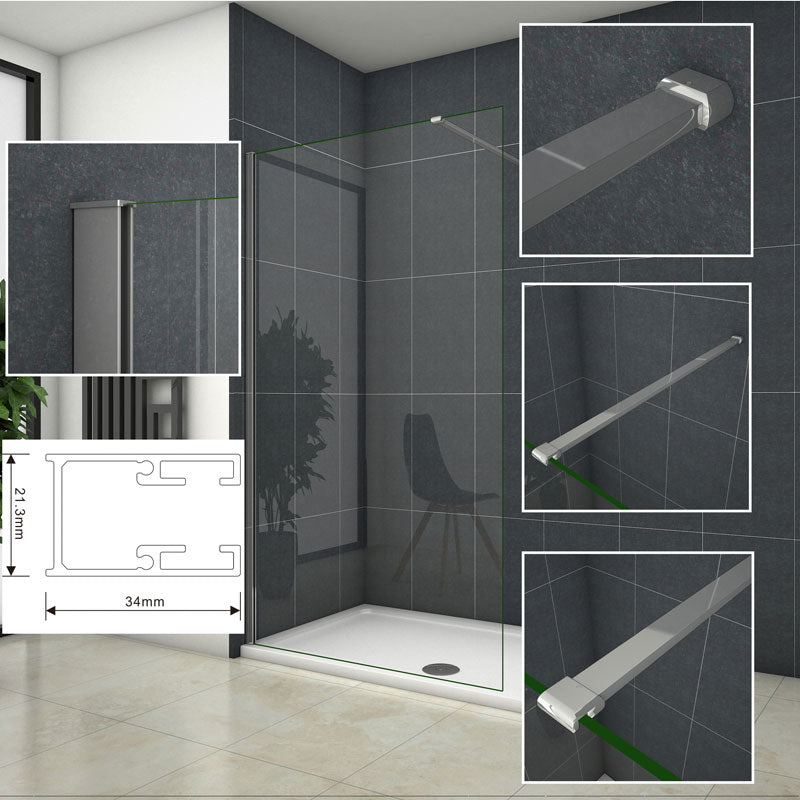 Aica Sanitär Profil und Stabilisierungsstange nur passend für 200cm Höhe Walk in Duschwand Ohne Glas